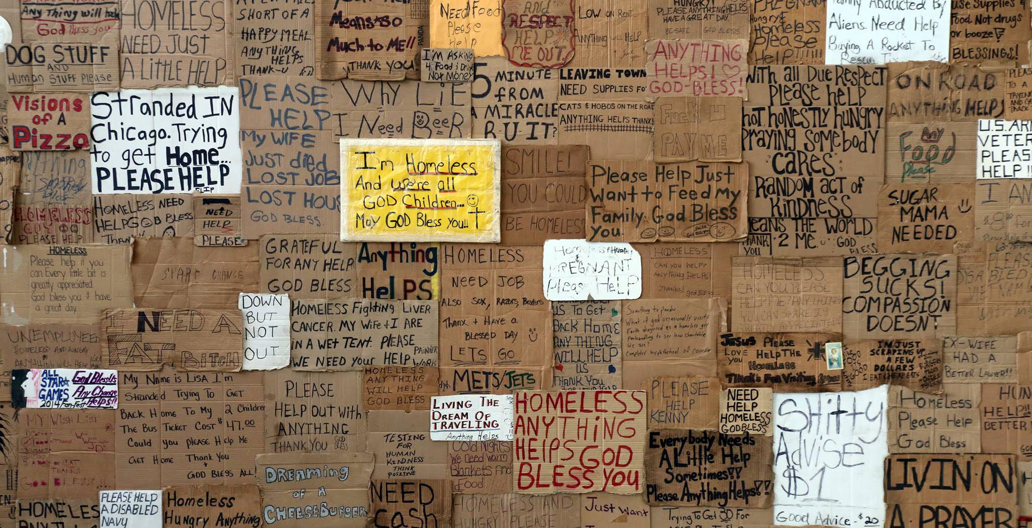 Since 1993, Baronet has purchased more than 2,000 signs from the homeless as part of a long-term art project titled, We Are All Homeless. It started on a whim and only later did Baronet make the connection that 1993 was also the first time he confronted his physically abusive father as an adult. Baronet was never physically homeless but never felt safe at “home” as a child. Collecting the signs and the stories of people who sold him their signs made him ask the question, “What is home?” He has since used this collection to create installations to similarly raise awareness in others about homelessness. The work has been seen across the United States and in the United Kingdom. During the month of July 2014, Baronet and three filmmakers began a thirty-one-day, cross-country trip to buy signs in twenty-four cities. The group interviewed more than 100 people on the streets and purchased over 280 signs, which became the subject of the documentary Signs of Humanity (2016).